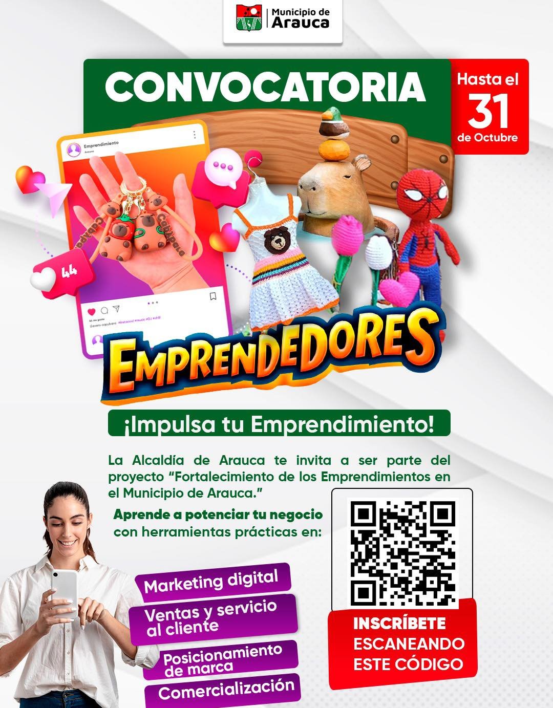 La Alcaldía de Arauca a través de la Secretaría de Agricultura, Desarrollo Económico y Sostenible lidera una convocatoria del proyecto de desarrollo de acciones para el fortalecimiento de los emprendimientos en el municipio de Arauca.