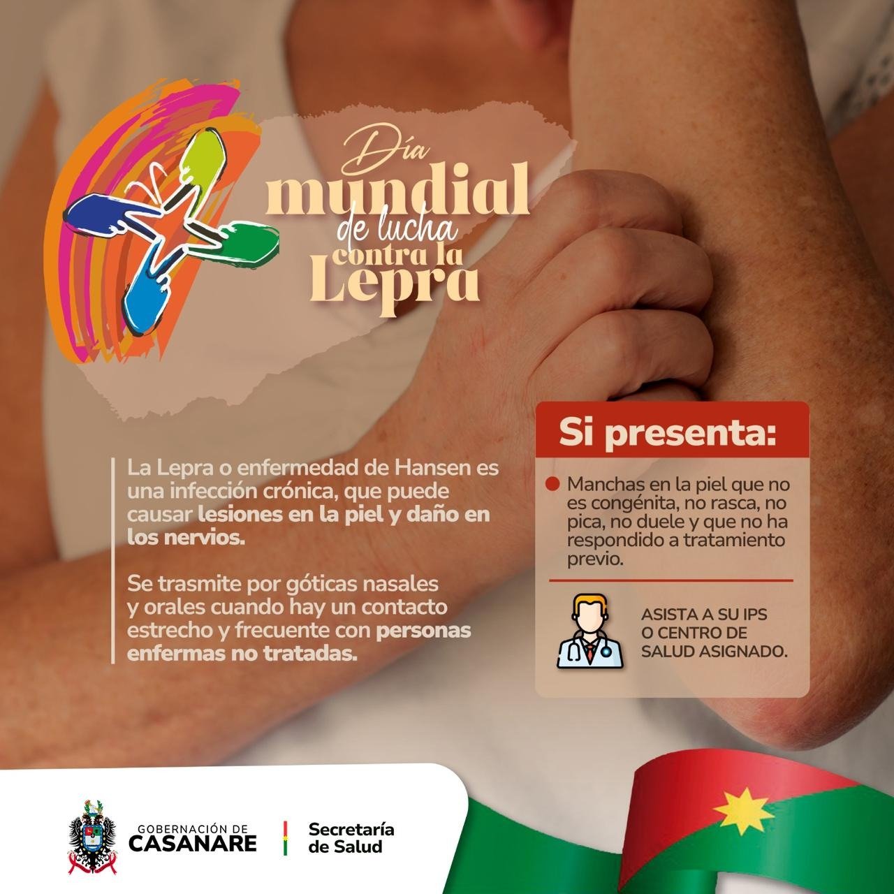 Este año, bajo el lema “La lepra es curable, el verdadero desafío es el estigma”, se hace un llamado desde la Secretaría de Salud de Casanare a sumar esfuerzos sanitarios, comunitarios e institucionales para avanzar hacia un país libre de lepra y libre de estigma.