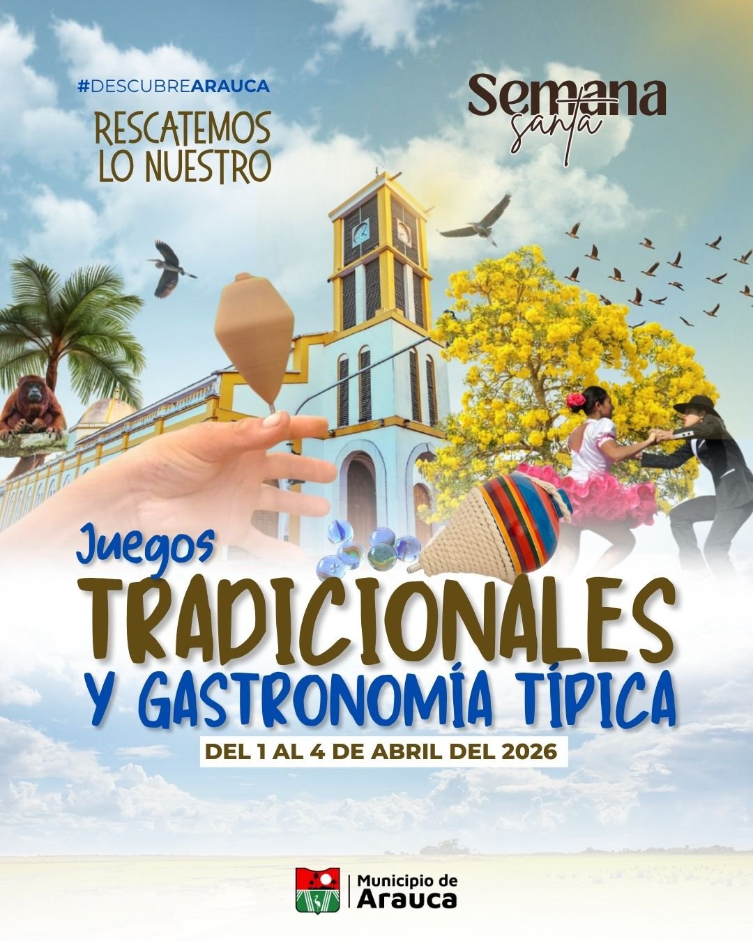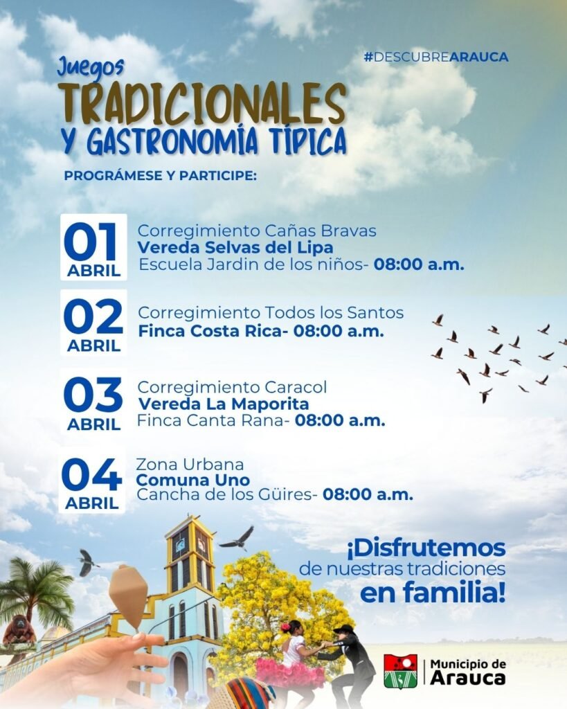 La Administración Municipal a través de la Secretaría de Educación, Cultura, Deporte y Recreación desarrolla el proyecto de juegos tradicionales y gastronomía típica ‘Rescatemos lo nuestro’ en semana santa, que inicia desde miércoles 1 de abril al sábado 4 de abril de 2026.